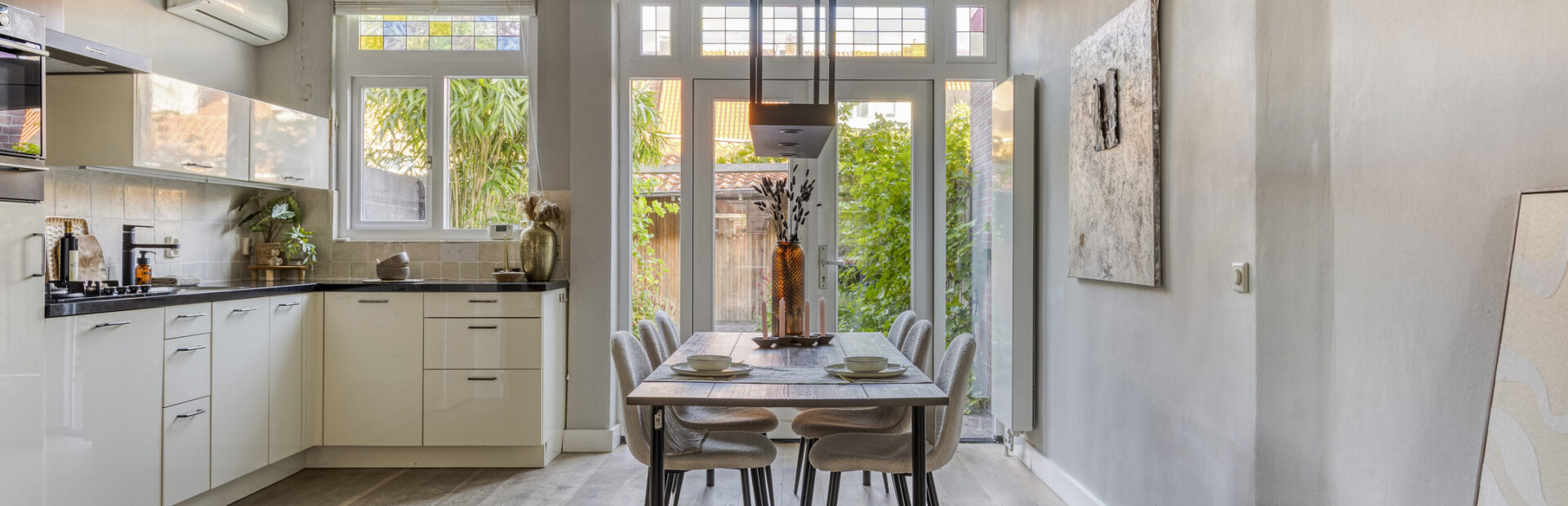De woonkamer/keuken is voorzien van een airco-installatie.