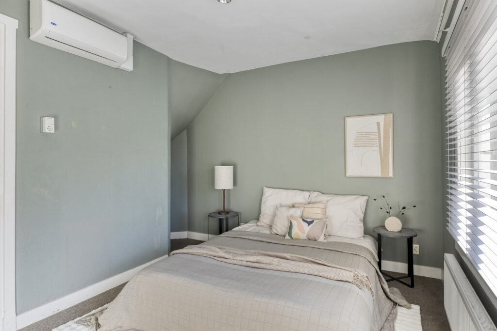 Slaapkamer 1 aan de voorzijde, voorzien van airco-installatie.