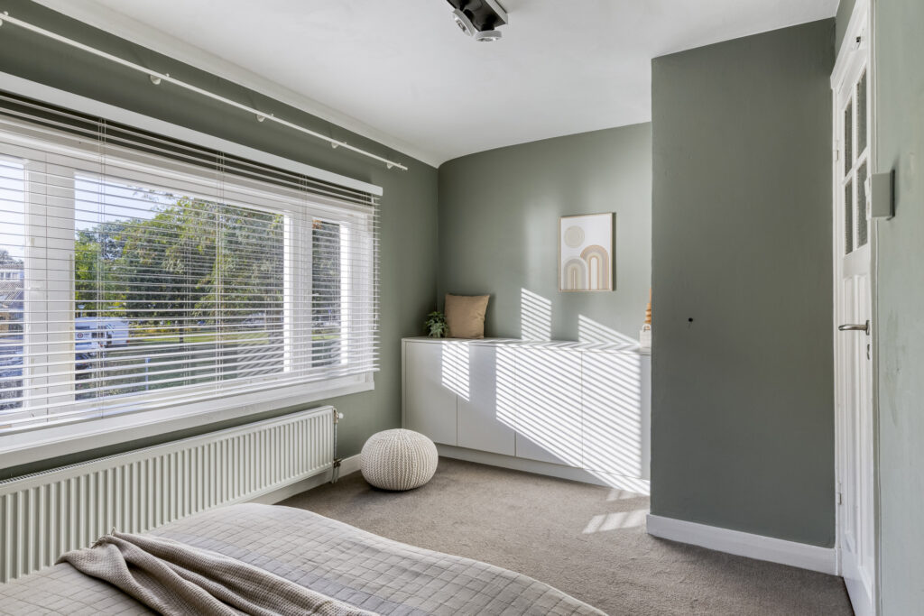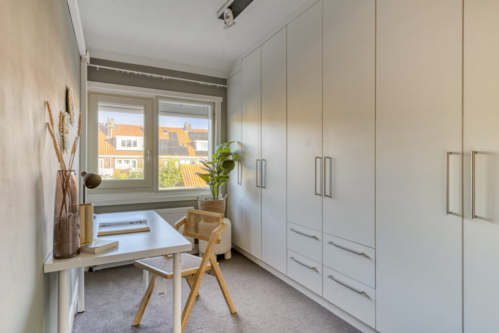 Slaapkamer 2 aan de achterzijde met vaste kastenwand.