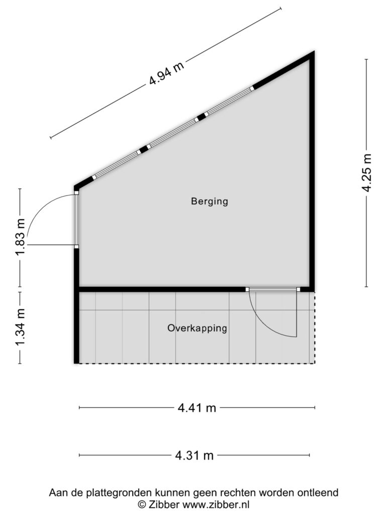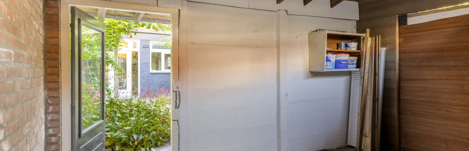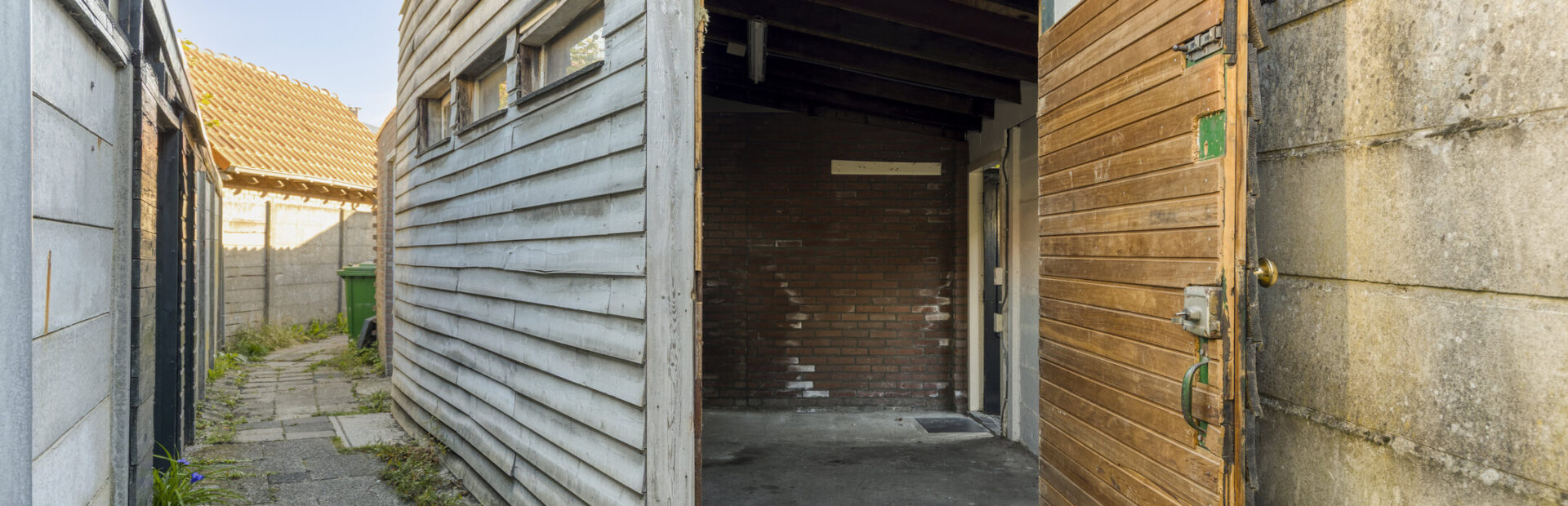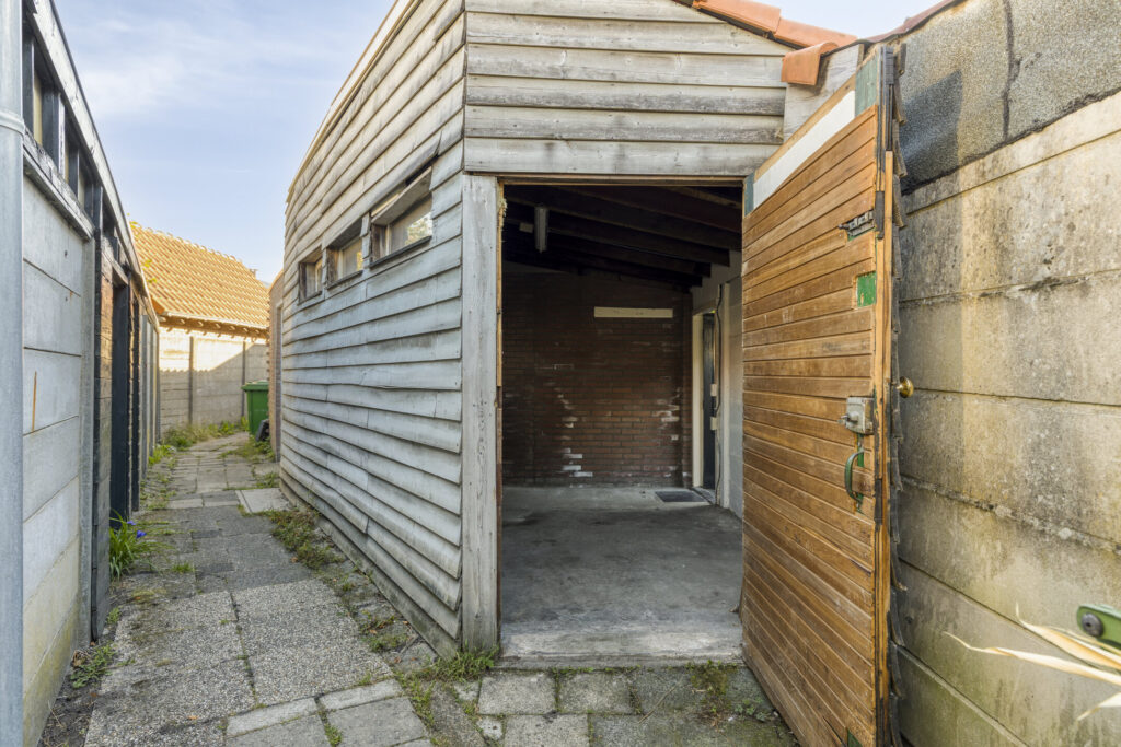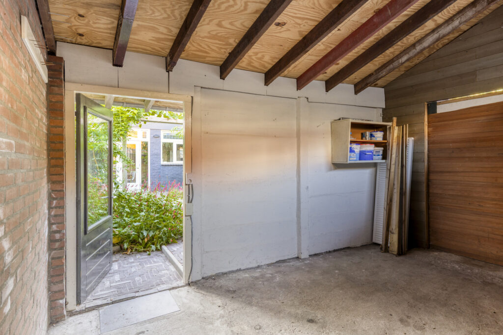 Ruime berging voorzien van elektra en eigen achterom.