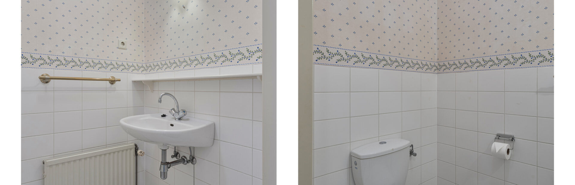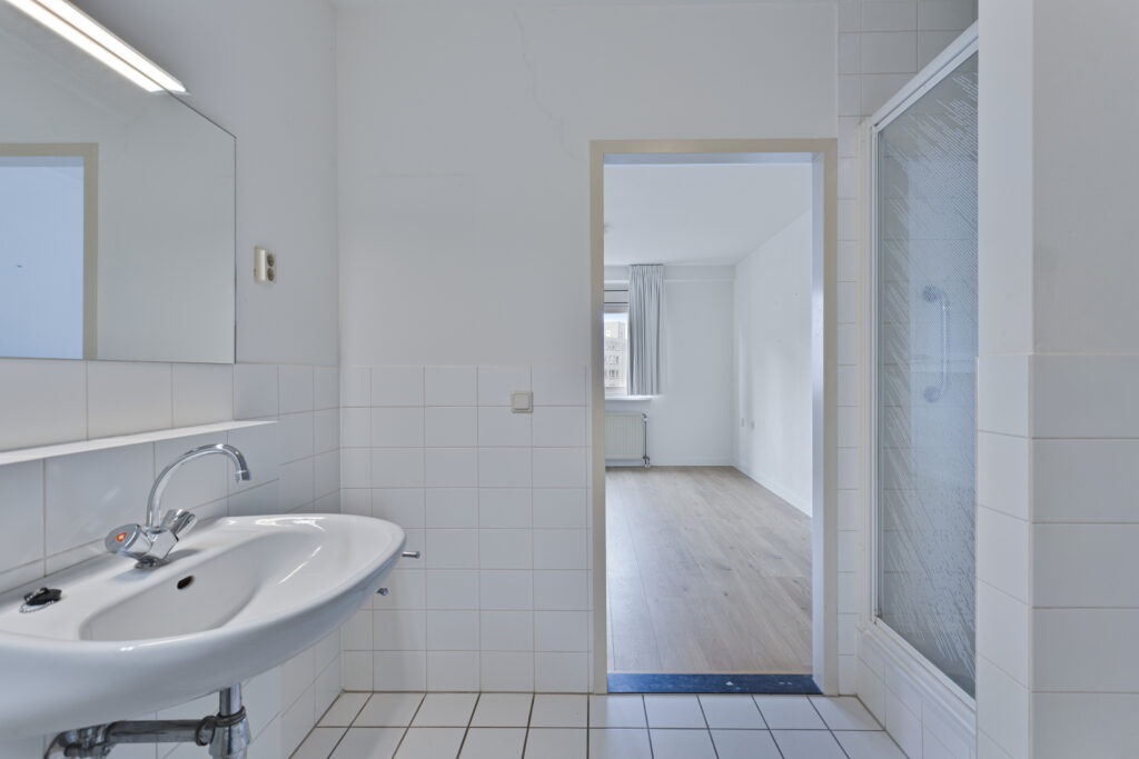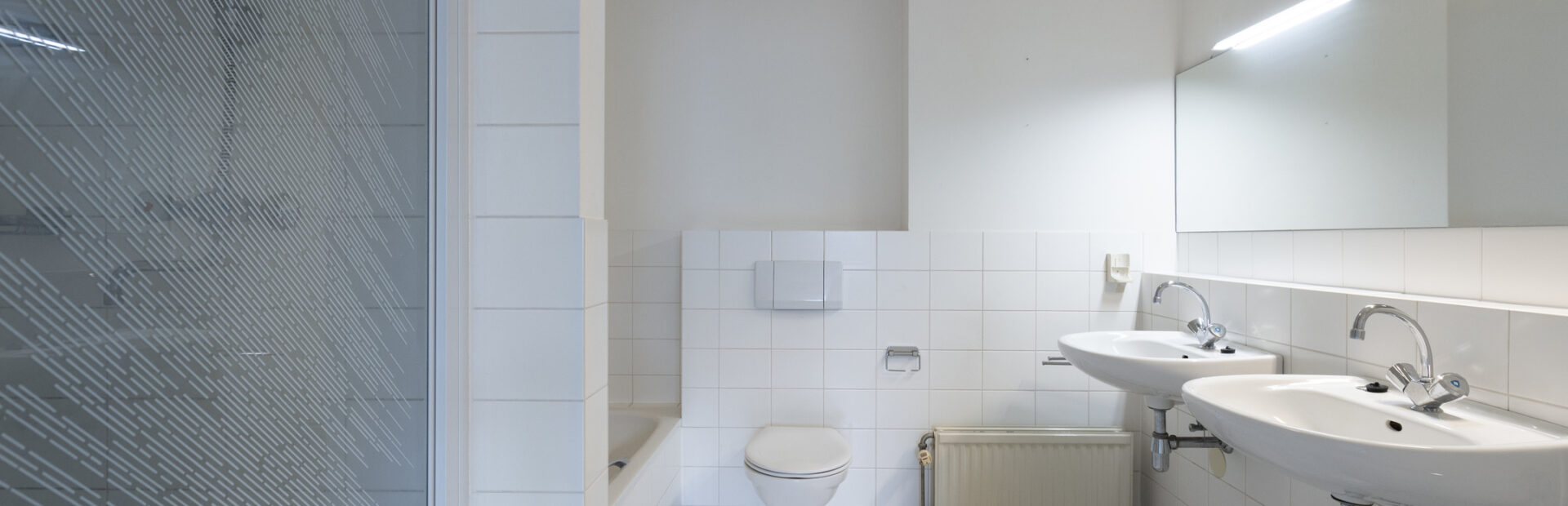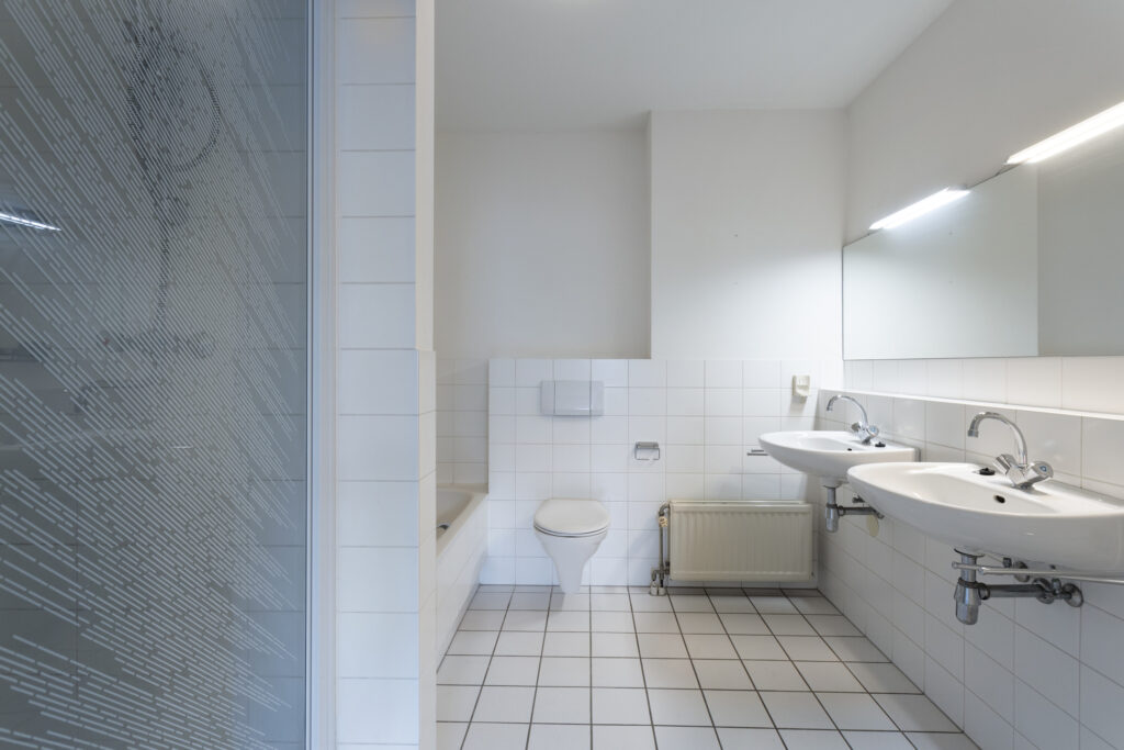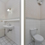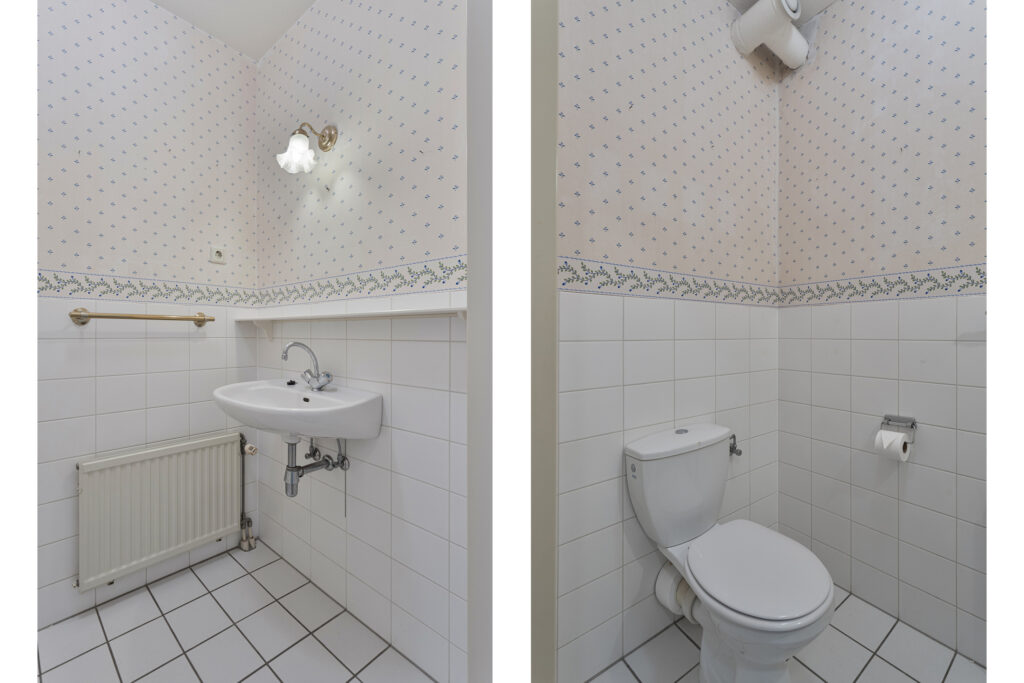 Ruime toiletruimte voorzien van een wastafel en toilet.