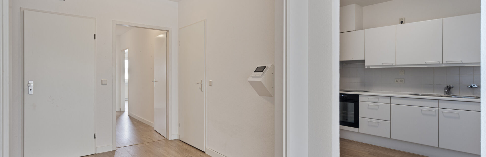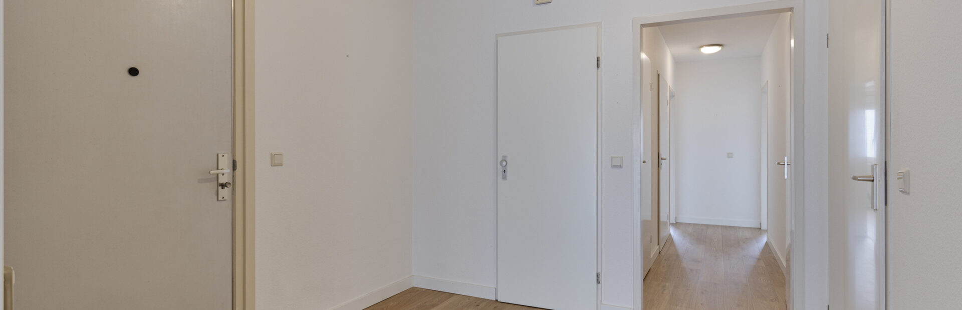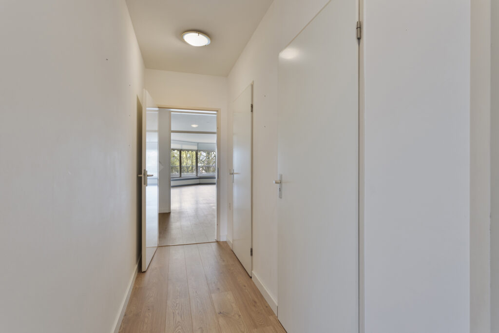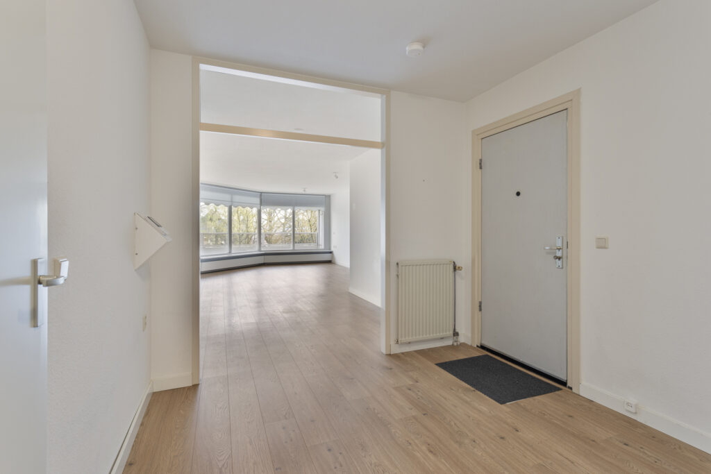 Royale hal met garderobekast, meterkast en videofoon.