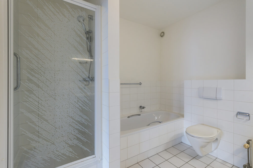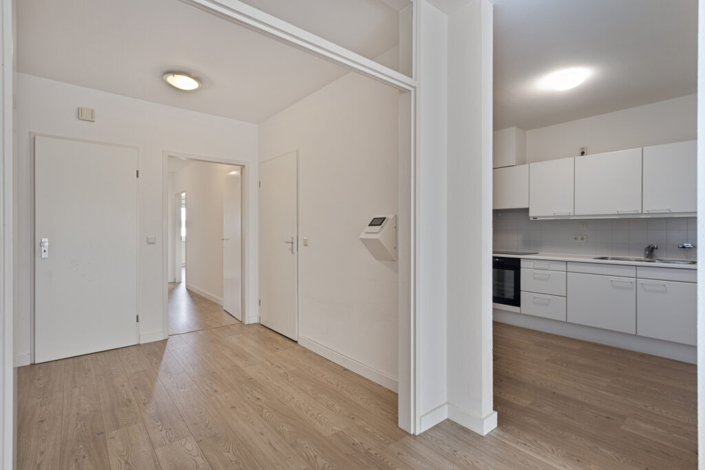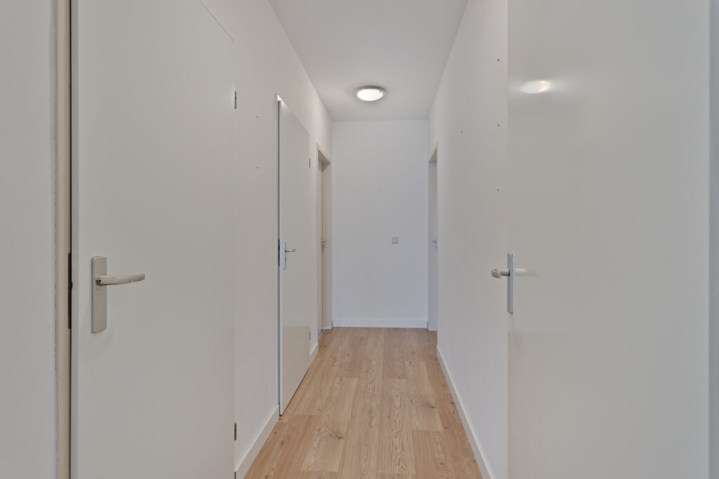 Centrale entree met verzorgde en luxe afgewerkte ontvangsthal met bellentableau, videofoon en brievenbussen. Via de hal is er toegang tot de trappenhal en de lift.