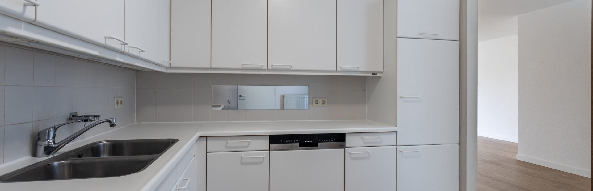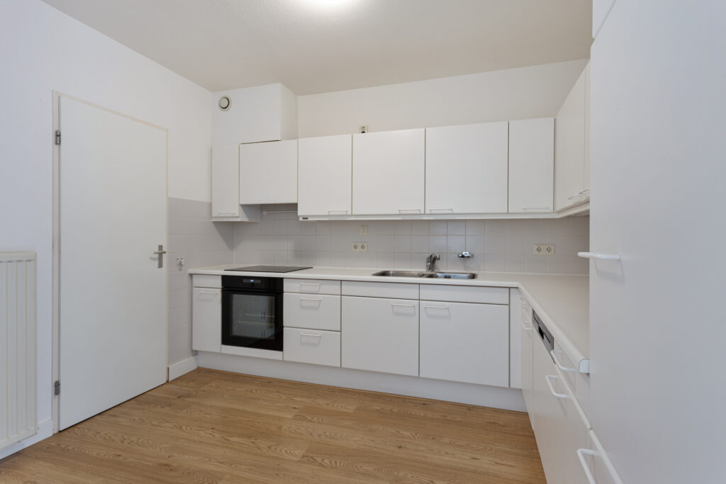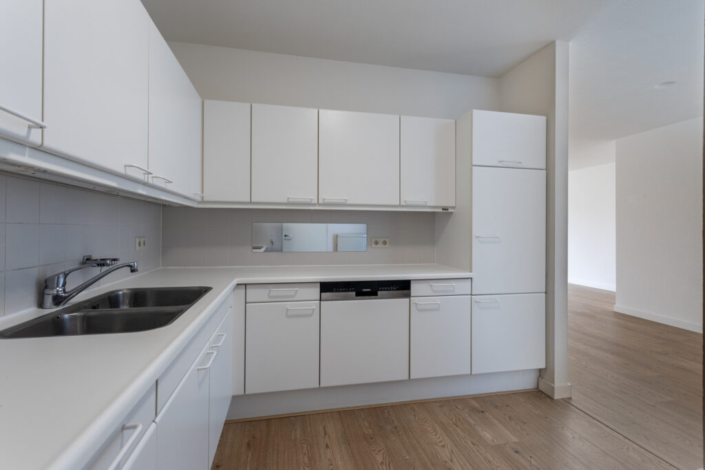 Keuken in hoekopstelling voorzien van diverse onder-en bovenkasten. De keuken is voorzien van een Siematic keukeninrichting met een koelkast, vernieuwde SIEMENS apparatuur: oven, inductie-kookplaat, afzuigkap en vaatwasser.