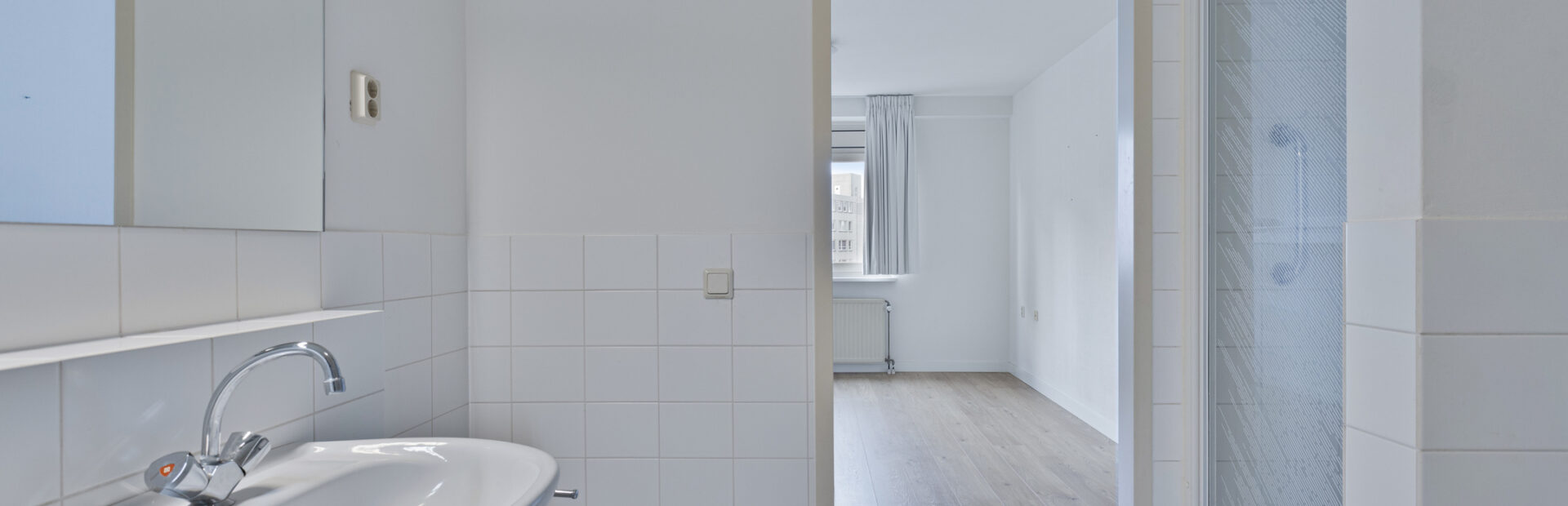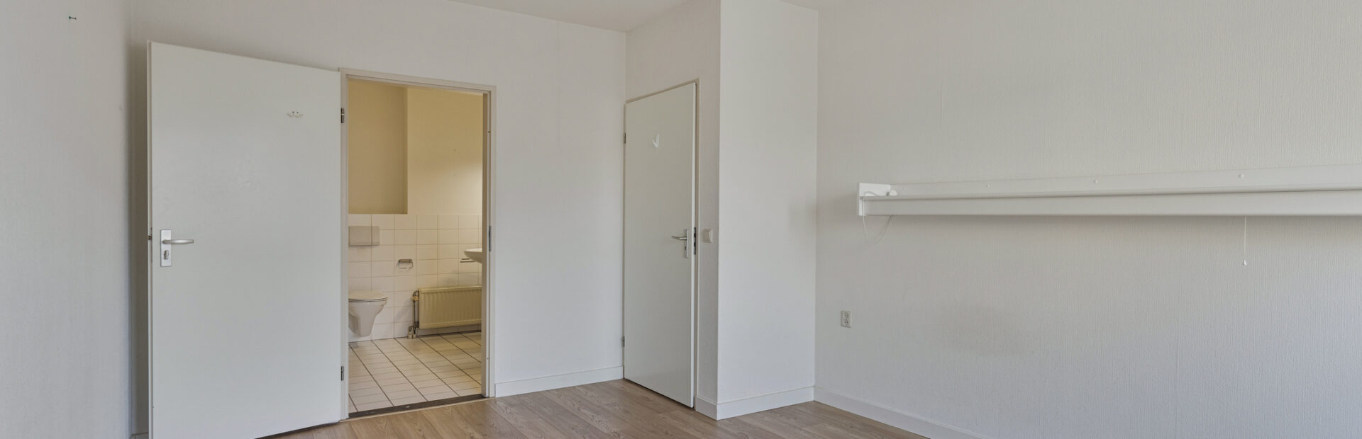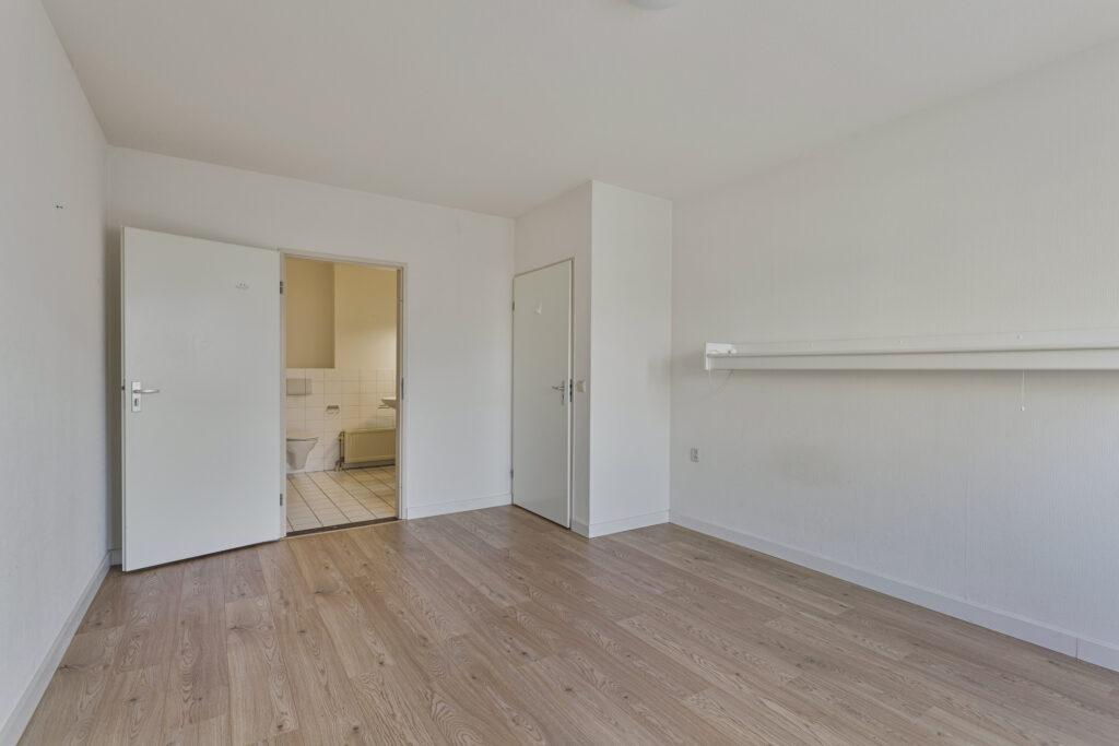 Royale slaapkamer 2 met toegang tot de wasruimte (voormalige badkamer) voorzien van aansluiting voor wasapparatuur.