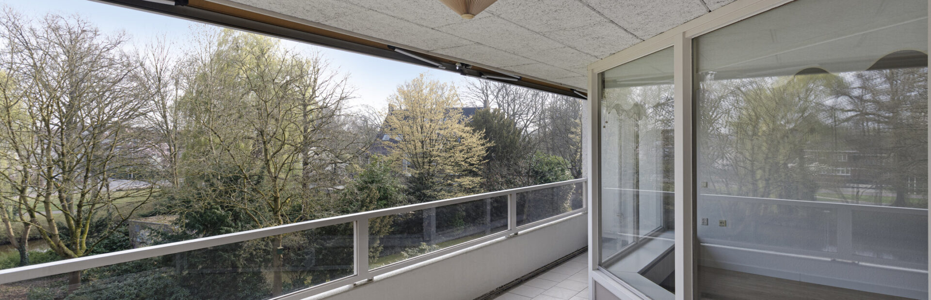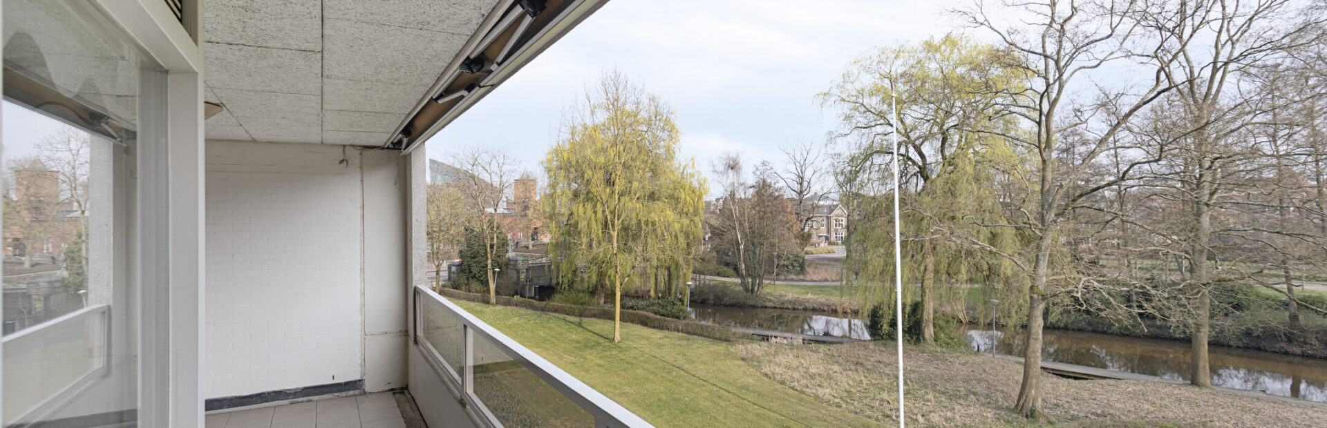 Balkon gelegen op het zuiden met prachtig uitzicht over het park grenzend aan de Dommel en Villapark den Elzent.
