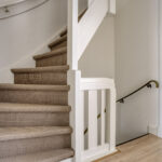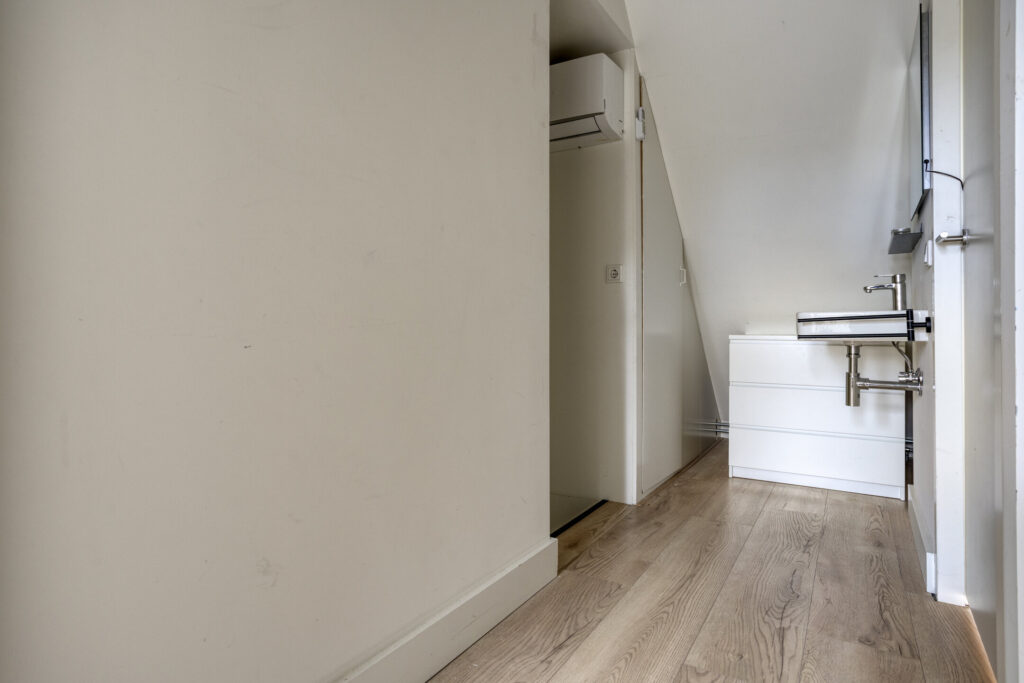 Overloop met extra wastafel. Opstelling CV-ketel in kast. Airco-installatie boven de trapopgang.