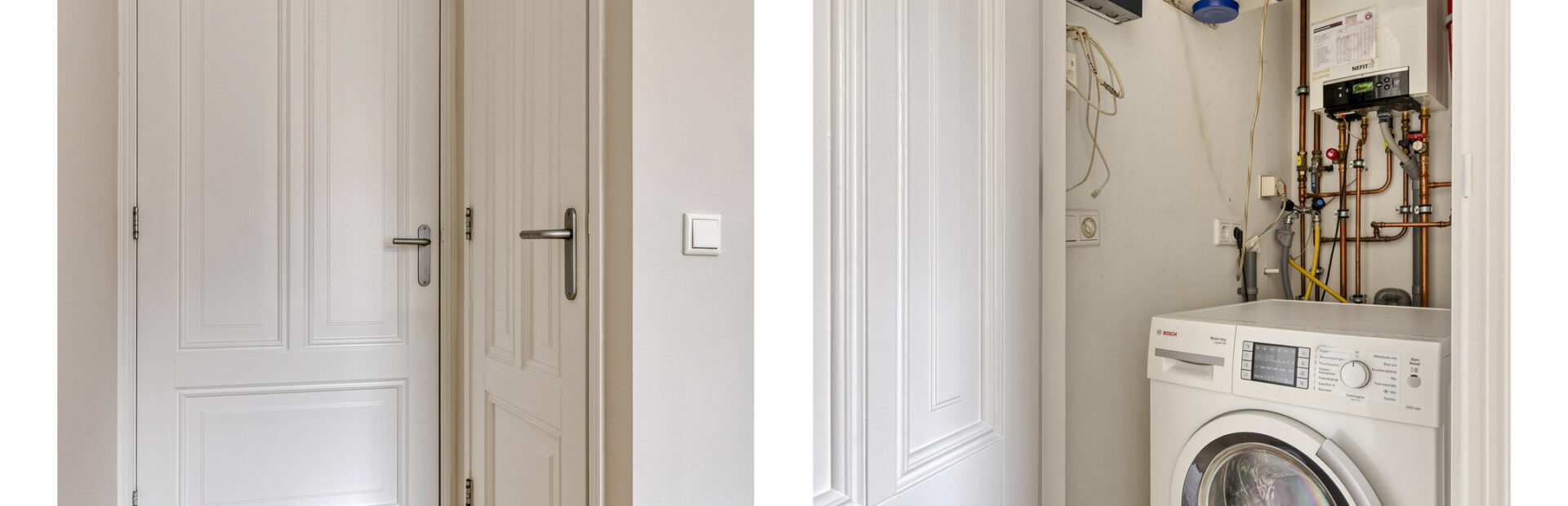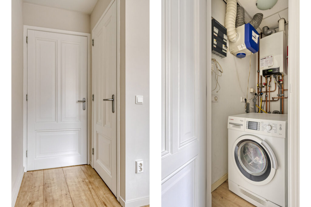 Inpandige berging/wasruimte met opstelling CV-combiketel en aansluiting van de was-apparatuur.